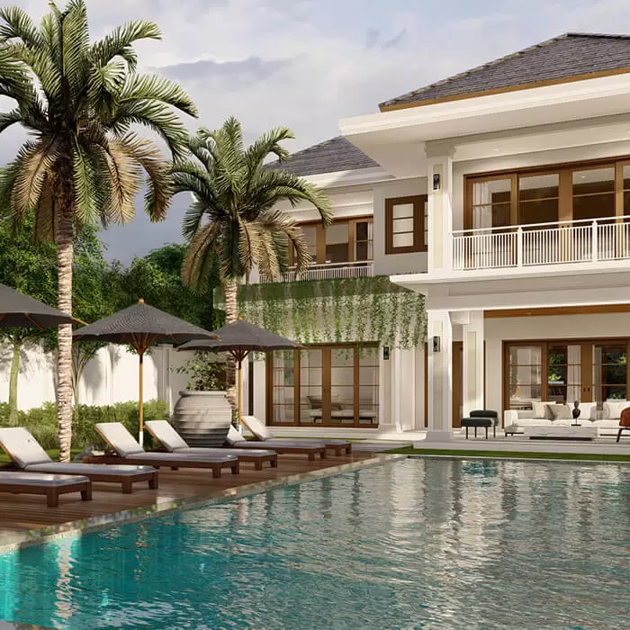 Amenara Estate consists of two modern interconnecting 6-bedroom villas, superbly positioned in a quiet locale, steps away from the shops, cafes, and Berawa beach.