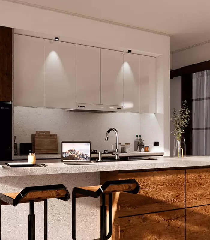 Each villa boasts multiple living, entertainment, and media rooms, both designer and wet kitchens, with adjacent dining tables that seat 12. And there is ample car and scooter parking.